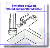 Hogyan működik? A víztisztító átfolyó rendszerű, azaz a szűrőbetéten átszűrődő víz közvetlenül a kifolyócsőn keresztül folyik ki. A csapvíz szűrése és a tisztított víz kifolyása rögtön megindul a konyhai csaptelep megnyitásával. A konyhai csaptelepre csatlakoztatott útváltó csap függőleges vagy vízszintes helyzete határozza meg a csapvíz útját. Függőleges helyzetben a csapvíz szűretlenül kifolyik a konyhai csaptelepből, vízszintes helyzetben pedig a víztisztítóba folyik, majd szűrést követően kifolyik annak saját kifolyócsövén keresztül. Lásd a képen! |
